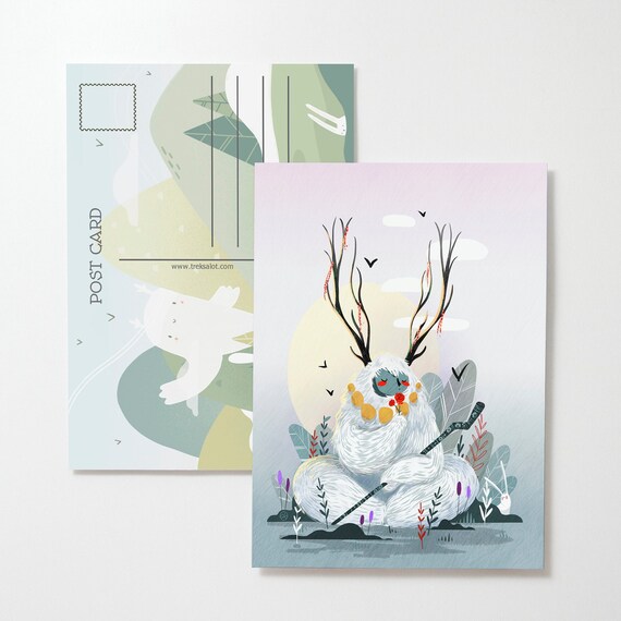 5x7 Cute Yeti Postcard Scandinavian Yeti Animal Yoga Etsy Canada